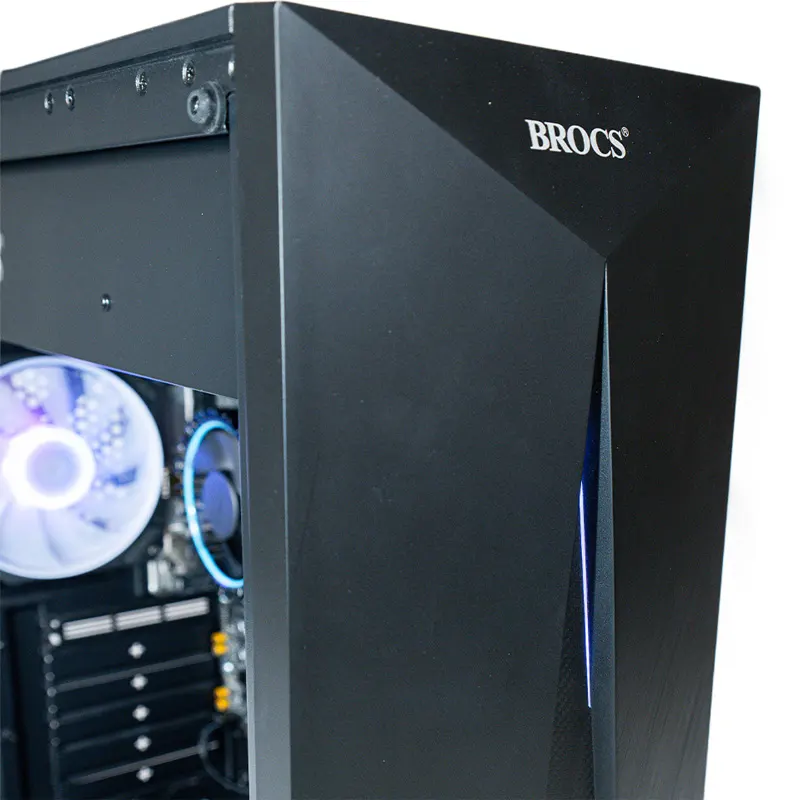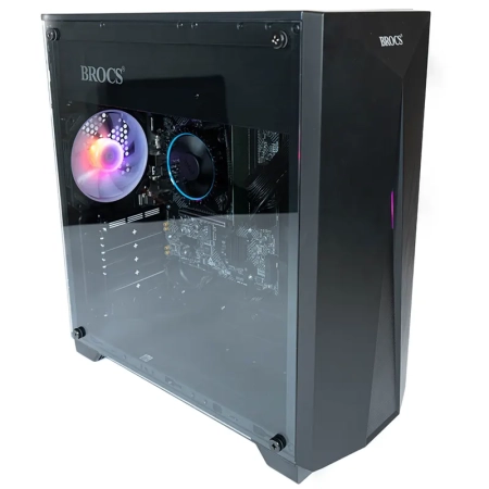 | Su acabado en color negro, junto con un chasis robusto y un panel frontal de 0.5 mm con detalles en plástico y tira ARGB, le da un aspecto moderno que complementa cualquier configuración. Además, el panel lateral de cristal templado permite visualizar los componentes internos, aportando un estilo más profesional al equipo. |