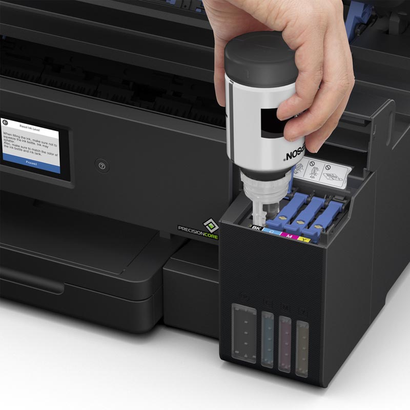 | Esta EcoTank® L14150 fue diseñada para usar exclusivamente con las botellas de tinta originales marca Epson. Epson recomienda el uso de tinta original para asegurar el mejor rendimiento y calidad de impresión y no arriesgar la garantía limitada. |