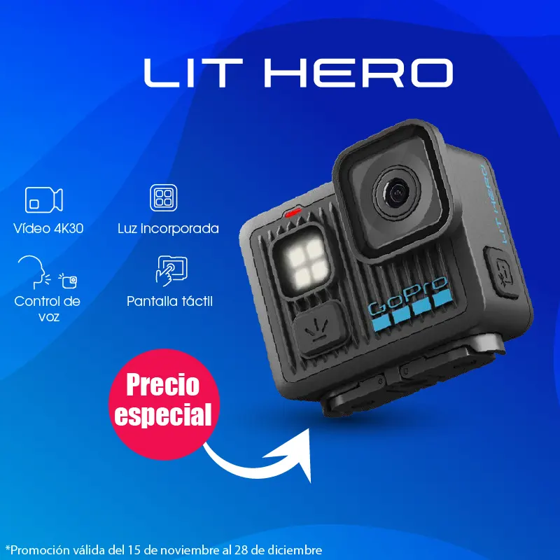 | Montaje | Montaje con adaptadores GoPro, roscas de 1/4-20″ y soporte con cierre magnético |