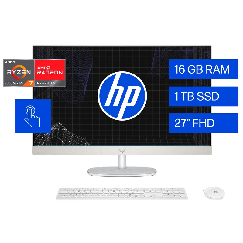 | Nombre Recomendado | All in One HP 27-cr0278la, AMD Ryzen 7, 16 GB RAM, 1 TB SSD, 27″ Táctil FHD, Windows 11 Home |