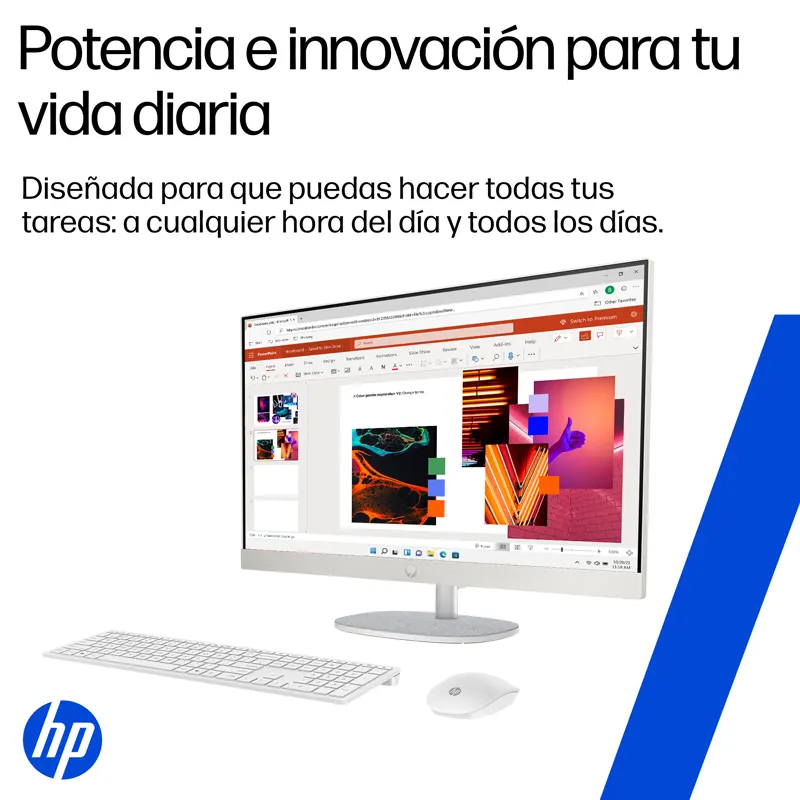 | Texto Descriptivo | Con la HP All-in-One 27″ puedes realizar múltiples tareas a la vez, comunícarte con los tuyos en videollamadas dinámicas y realizar rápidamente tus tareas cotidianas. Esto gracias a su potente procesador AMD, memoria mejorada, cámara de privacidad emergente e inclinable y una amplia pantalla FHD. |