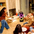| Descripción | Llevamos la energía de la fiesta al máximo a dondequiera que vamos con el JBL PartyBox 720. Sonido JBL Pro Sound superior, graves profundos y precisos que impactan a la perfección y un espectáculo de luces que lo da todo: luces estrelladas, estelas fluidas y luces estroboscópicas pulsantes. Puede ser grande, pero está diseñado para rodar, con un mango cómodo, ruedas anchas y silenciosas y un diseño a prueba de salpicaduras que puede generar un poco de acción junto a la piscina. Las baterías intercambiables (se venden por separado) nos brindan hasta 15 horas de tiempo de reproducción, perfecto para fiestas sin lugar donde cargar. ¿Todavía sigue potente? Cambia una batería nueva y mantén viva la música. Podemos parear dos 720 para obtener un sonido estéreo o conectar de forma inalámbrica varias bocinas compatibles con JBL Auracast™ para obtener un sonido más potente. Y ya sea que estemos transmitiendo, cantando karaoke o conectando micrófonos y equipos, el puerto USB y las entradas dobles XLR nos tienen cubiertos. |
