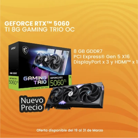 Precio Regular Q4,189.00MSI, Tarjeta de video, GeForce RTX 5060 Ti TRIO OC 8GB GDDR7 – 824142422137